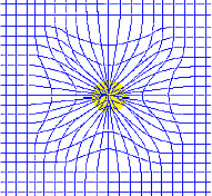 Fig 2.2 - Same as Figure 1.5e, but this time it shows a sphere full of energy compressed with a force greater than the stiffness of spacetime. The volume of the two sphere is the same, and so is the density. |