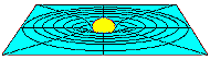 Figure 1.3 - Rubber sheet model for space time wrappng around a large mass. |