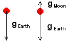 1.2.1 The effect of the MoonThis paragraph tries to explain what would happen to the energy of the same photons when the Moon or another large mass comes out at a certain distance. As shown in Figure 1.2, the total acceleration constant g would decrease due to the opposite attraction of the other mass, hence, as indicated by the rightmost expression in 1.0, also the frequency variation Df must decrease. Referring to Figure 1.1, if the Moon is placed at point A, the frequency at that point is expected to increase for the grater pull of the Moon than the Earth, whilst the frequency at point B on Earth is expected to decrease, because the Moon would weakly interfere with the signal in the opposite direction. The final signal would appear as slightly shifted toward point A. |